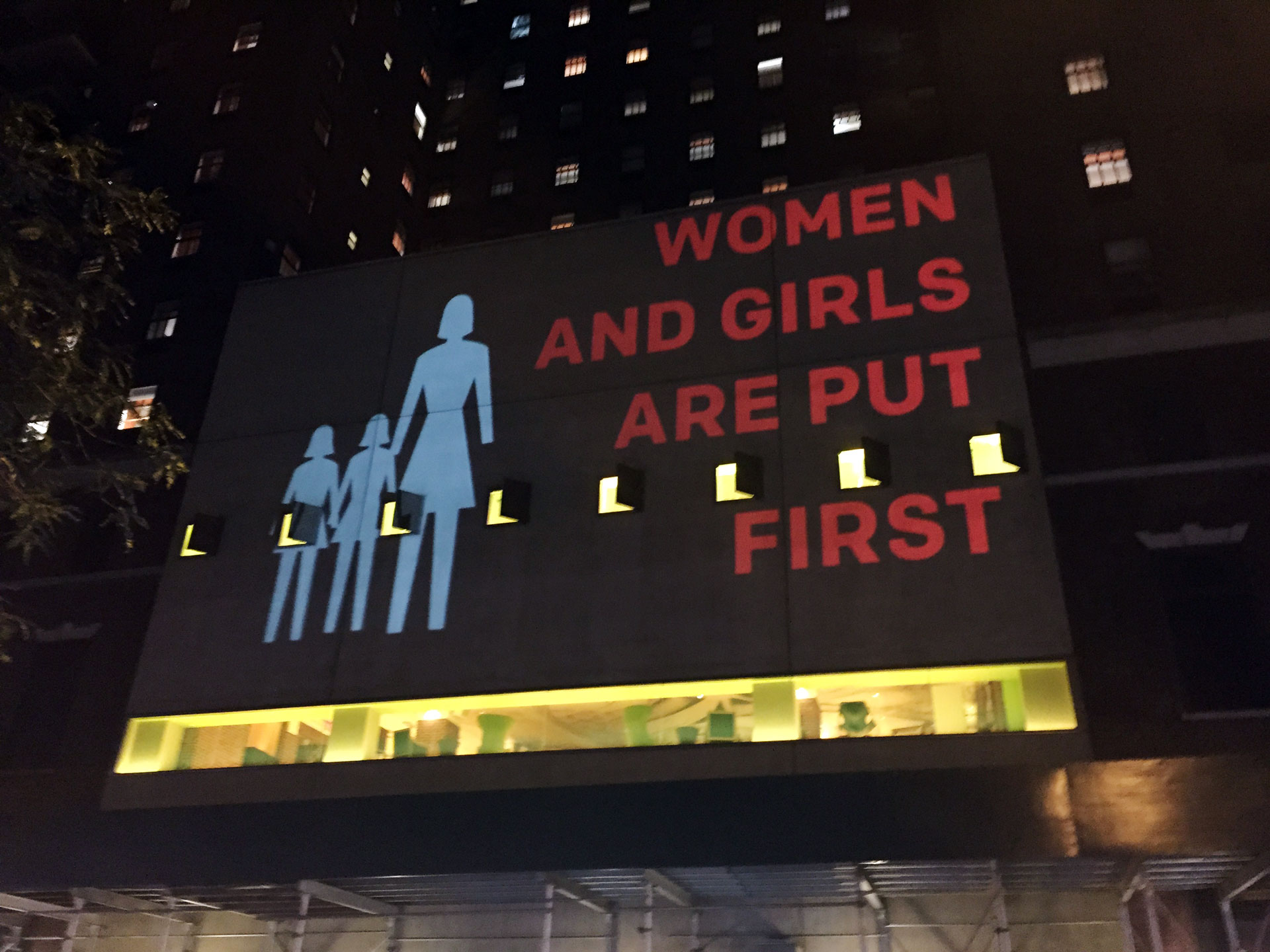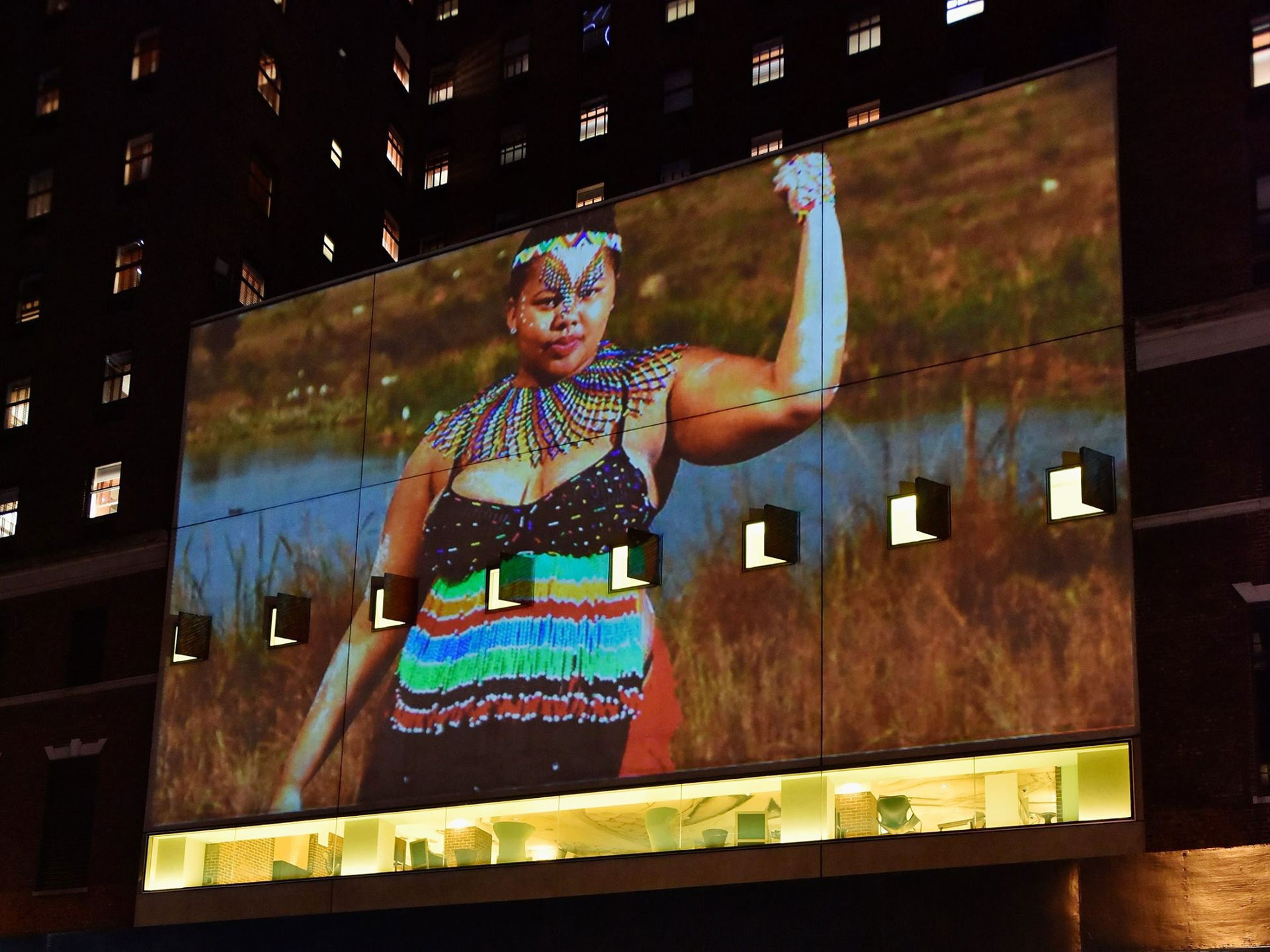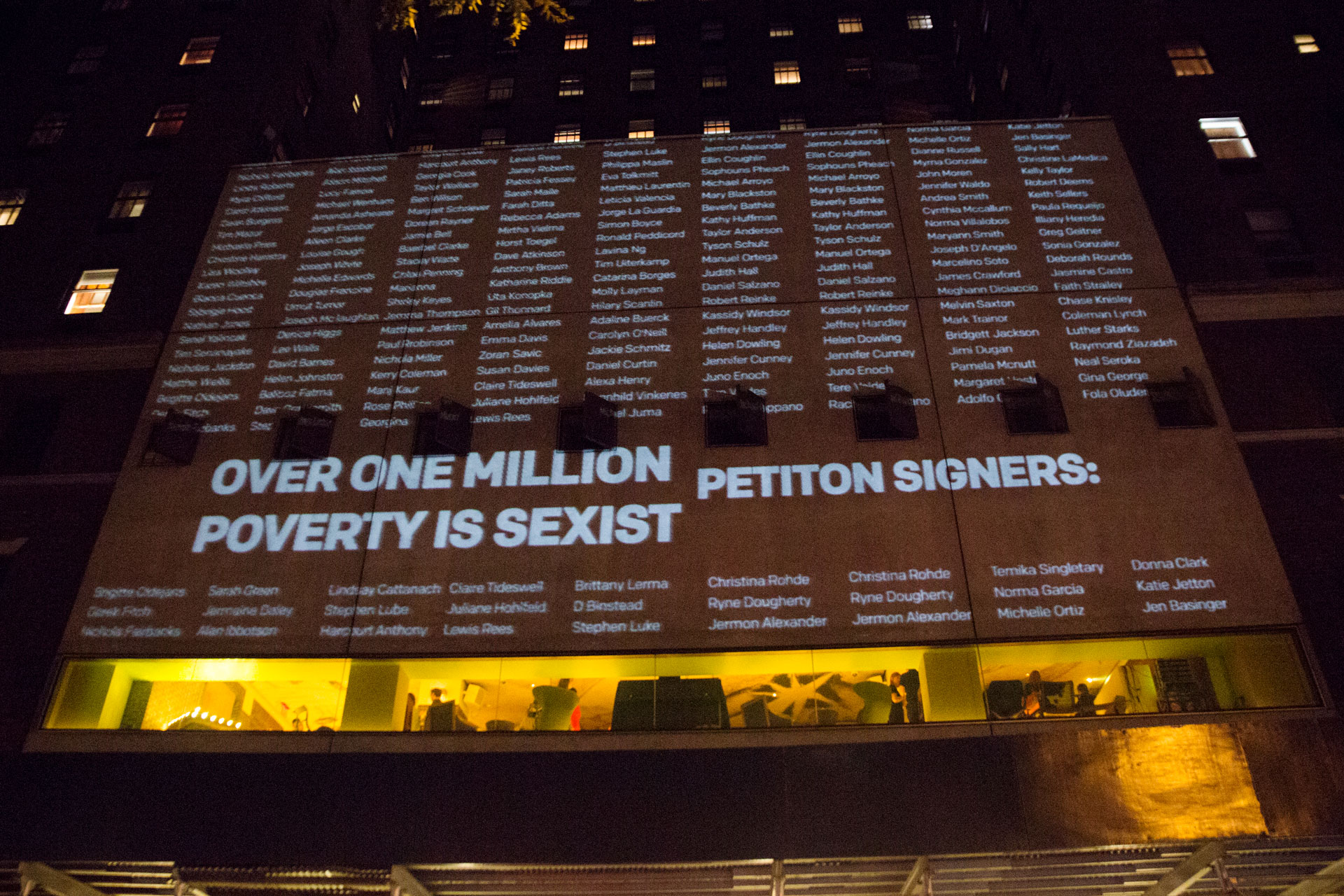 The ONE Campaign asked Optical Animal to projection map the Hudson Hotel for an event during the UN General Assembly. We developed animated motion graphic narrative which included the group’s mission statement, as well as a mosaic of live-updating photos from supporters tweeting around the world. We also set up a wireless system for our team of photographers to instantaneously add new photos taken at the event to the projected mosaic.