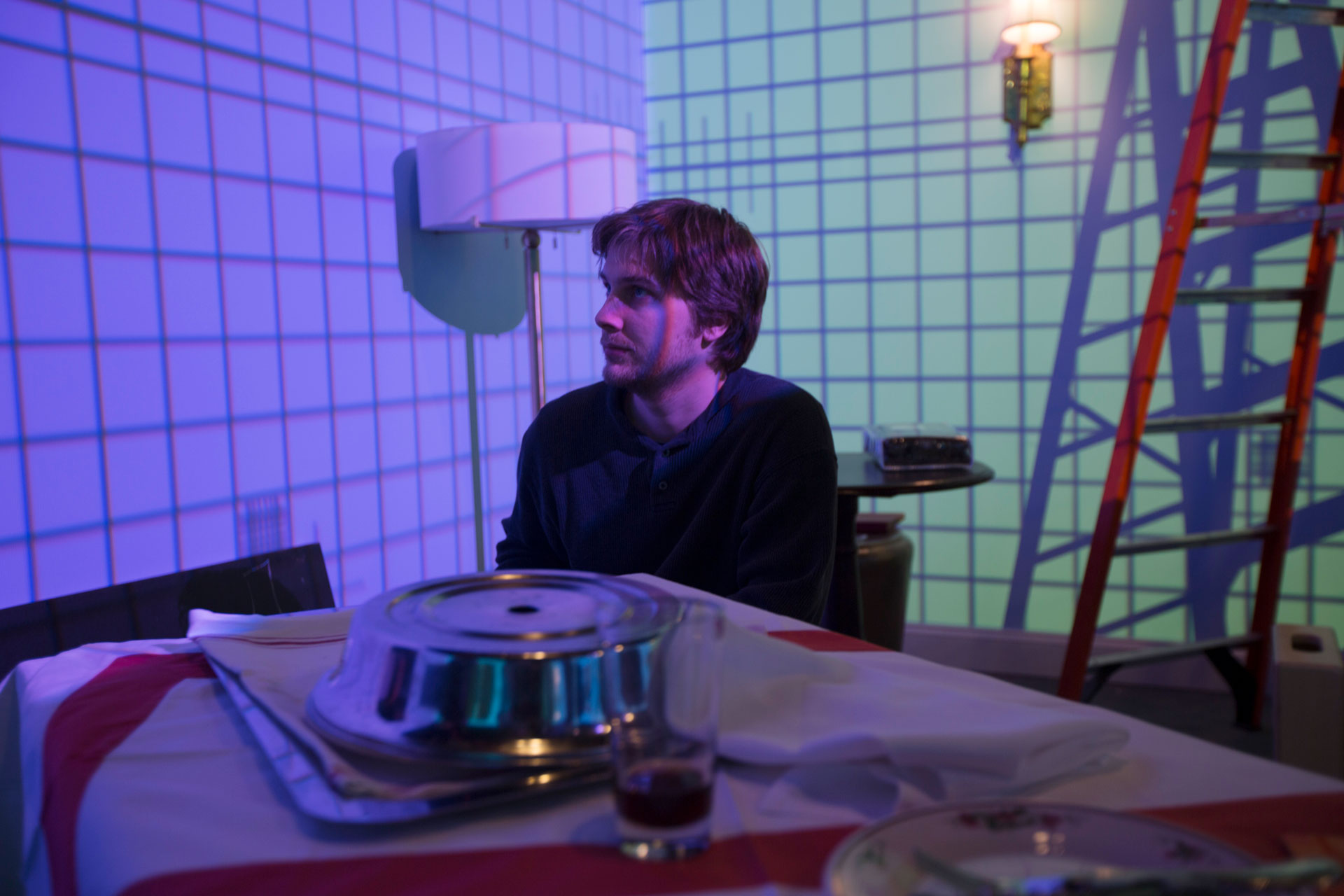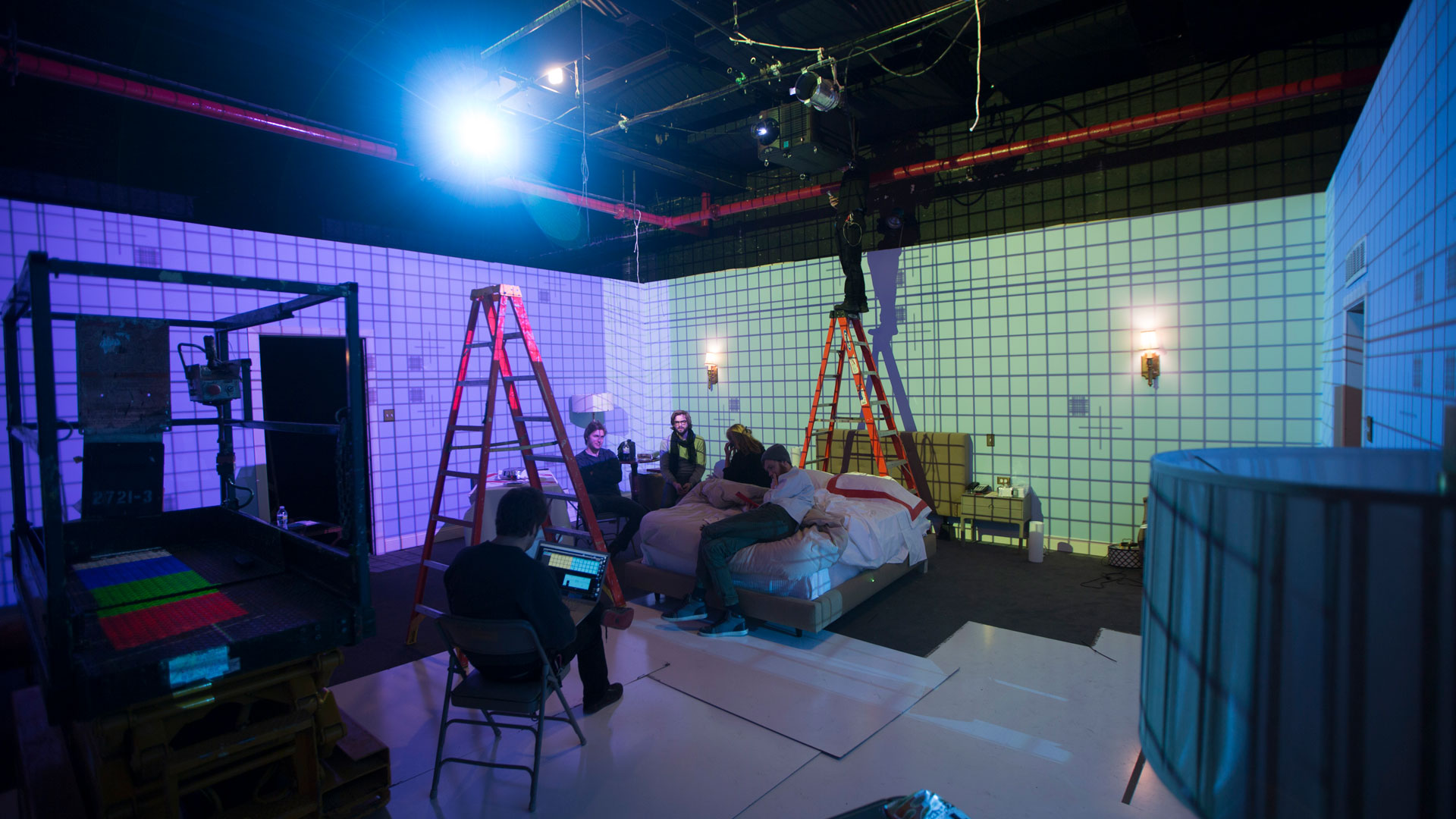 Optical Animal provided a 360˚ projection mapping system to complete the set design for the surreal experimental short film, 1009, directed by Josh Mond. OA installed projectors and blended video mapped content onto the four walls of the set. The projections were calibrated to illuminate the white walls without projecting onto the objects and furniture, creating a visceral illusion that the entire room was embodied by the dreams and memories of the main character.