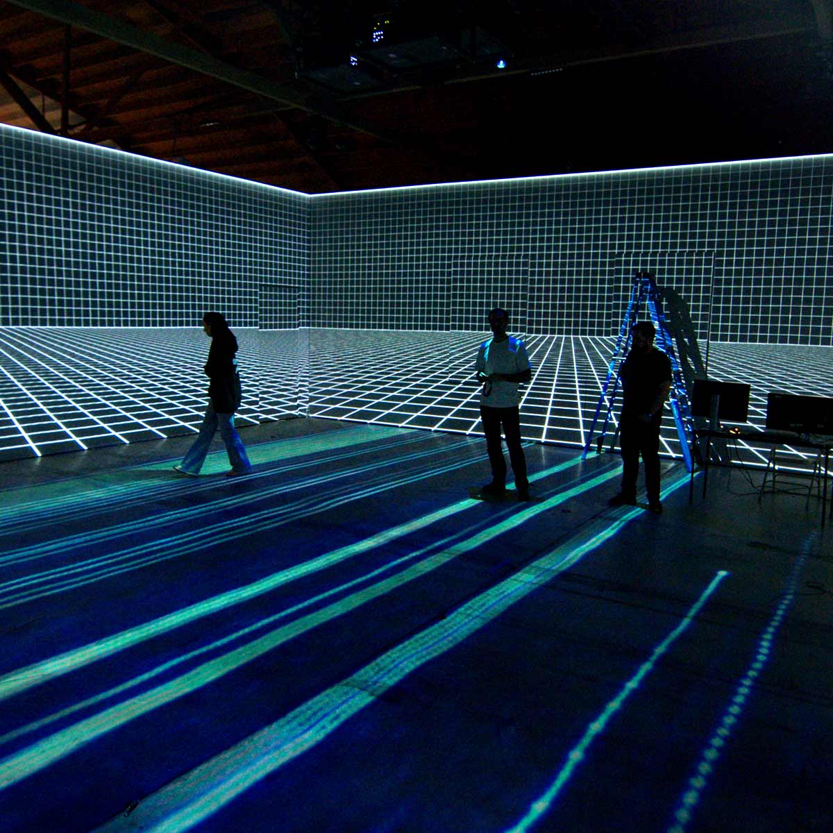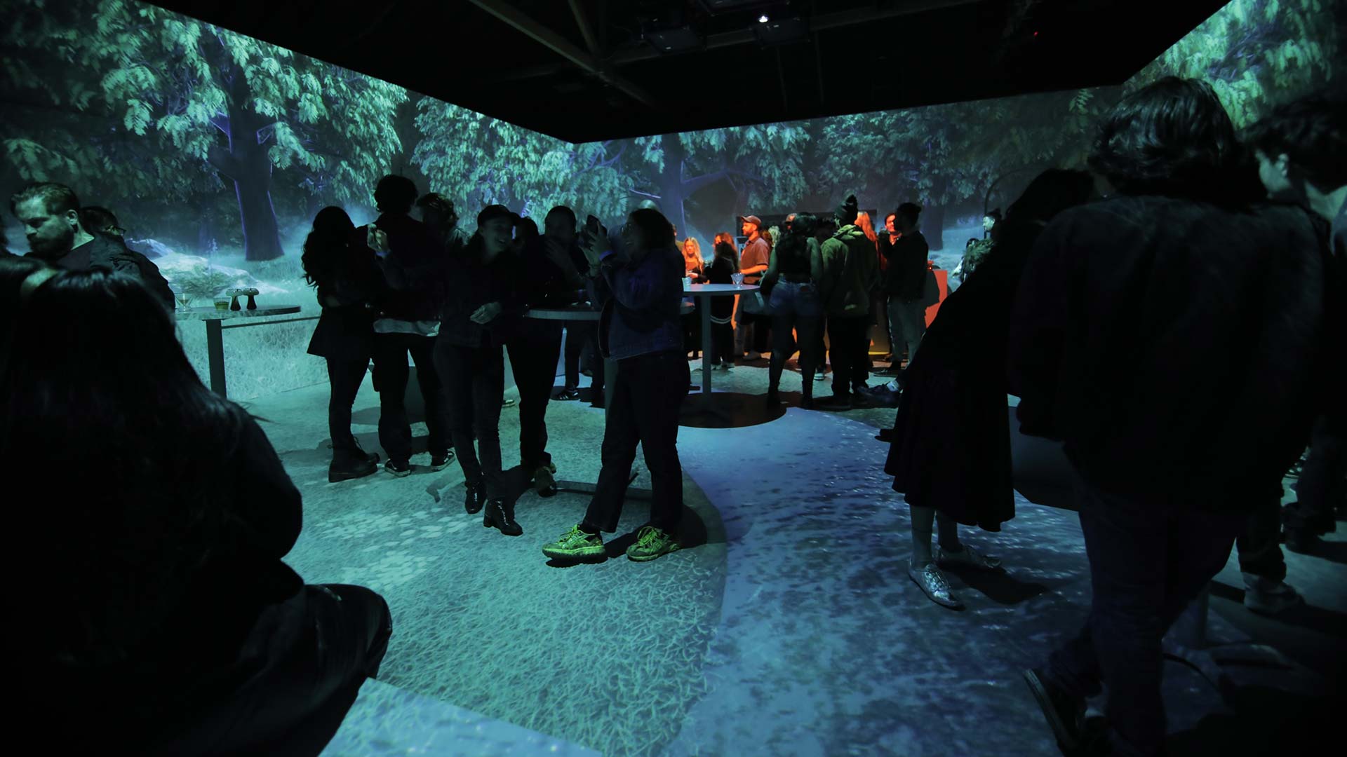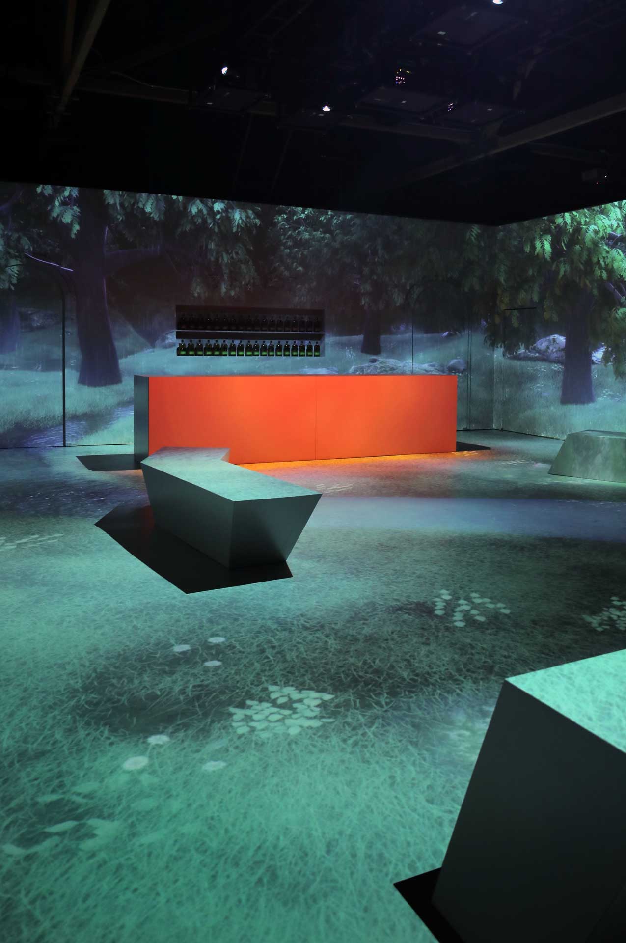As a complement to the ultra-high resolution immersive projections of the main space, OA also created a supporting installation featuring a series of vintage 16mm projectors and physical film loops, rounding out the experience with a throwback to the analog world where it all began.