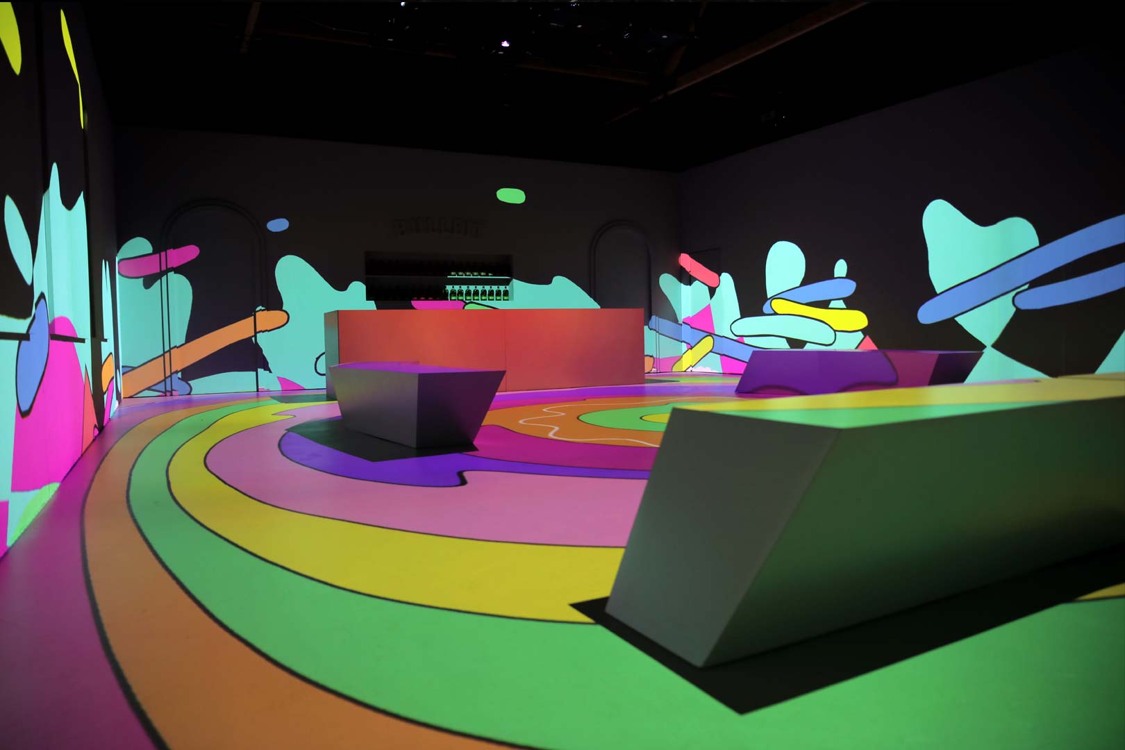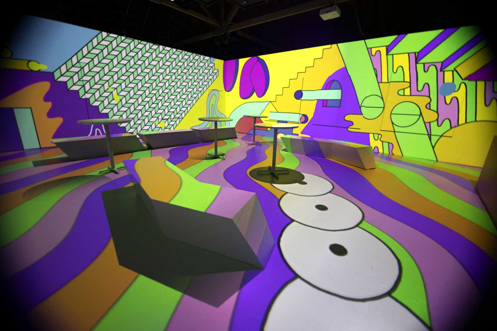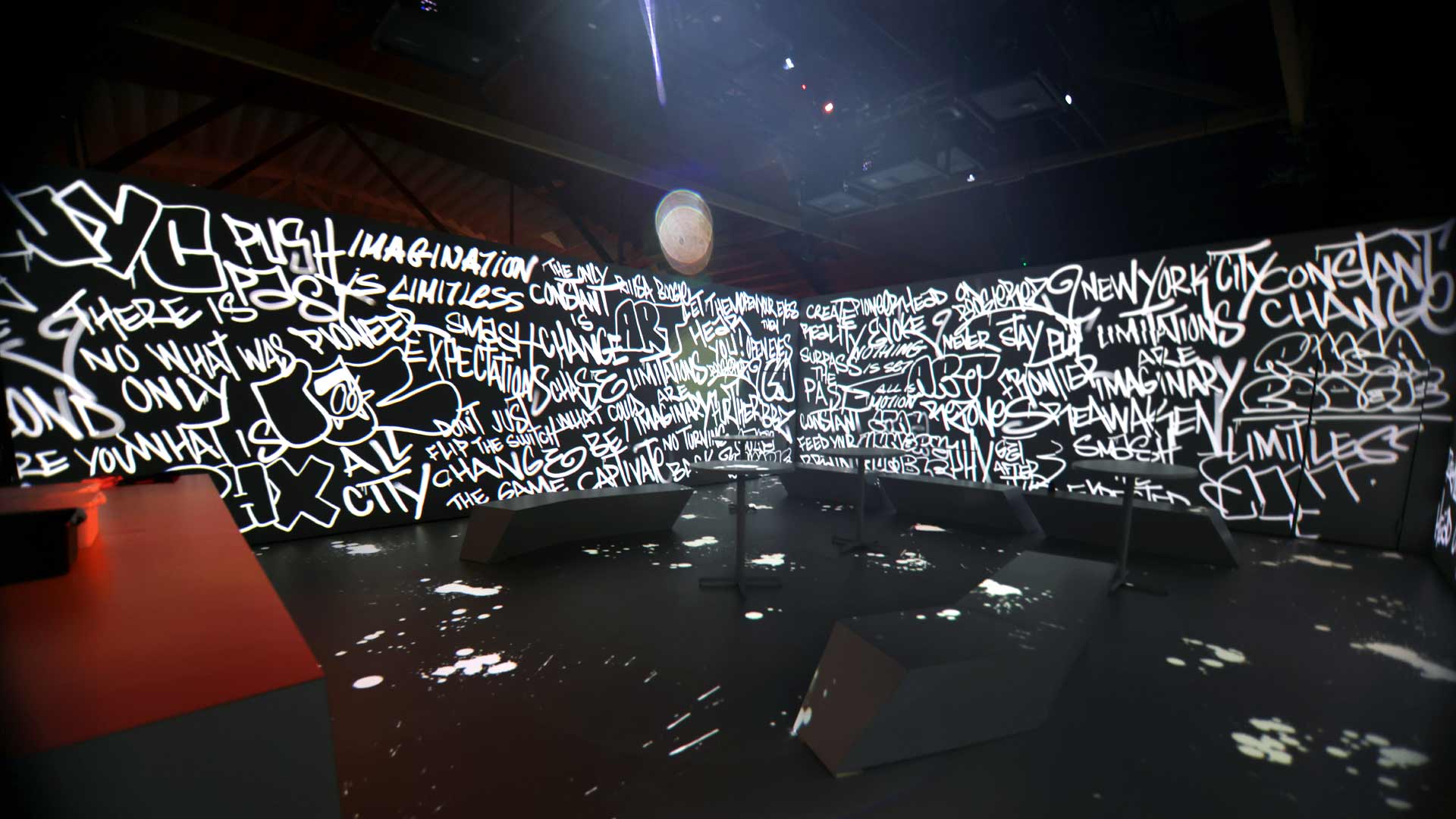 The looping 25-minute narrative was scripted, designed, animated and installed by Optical Animal, venturing out on a vivid, abstract exploration into the creative process. To provide a broad range of insight and inspiration, OA brought on collaborating artists