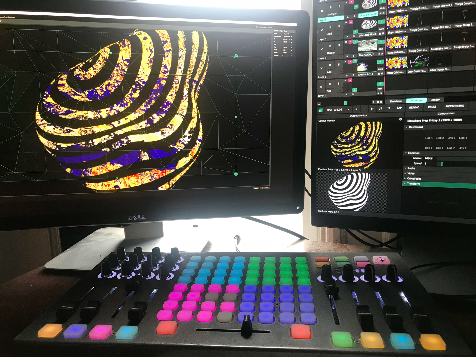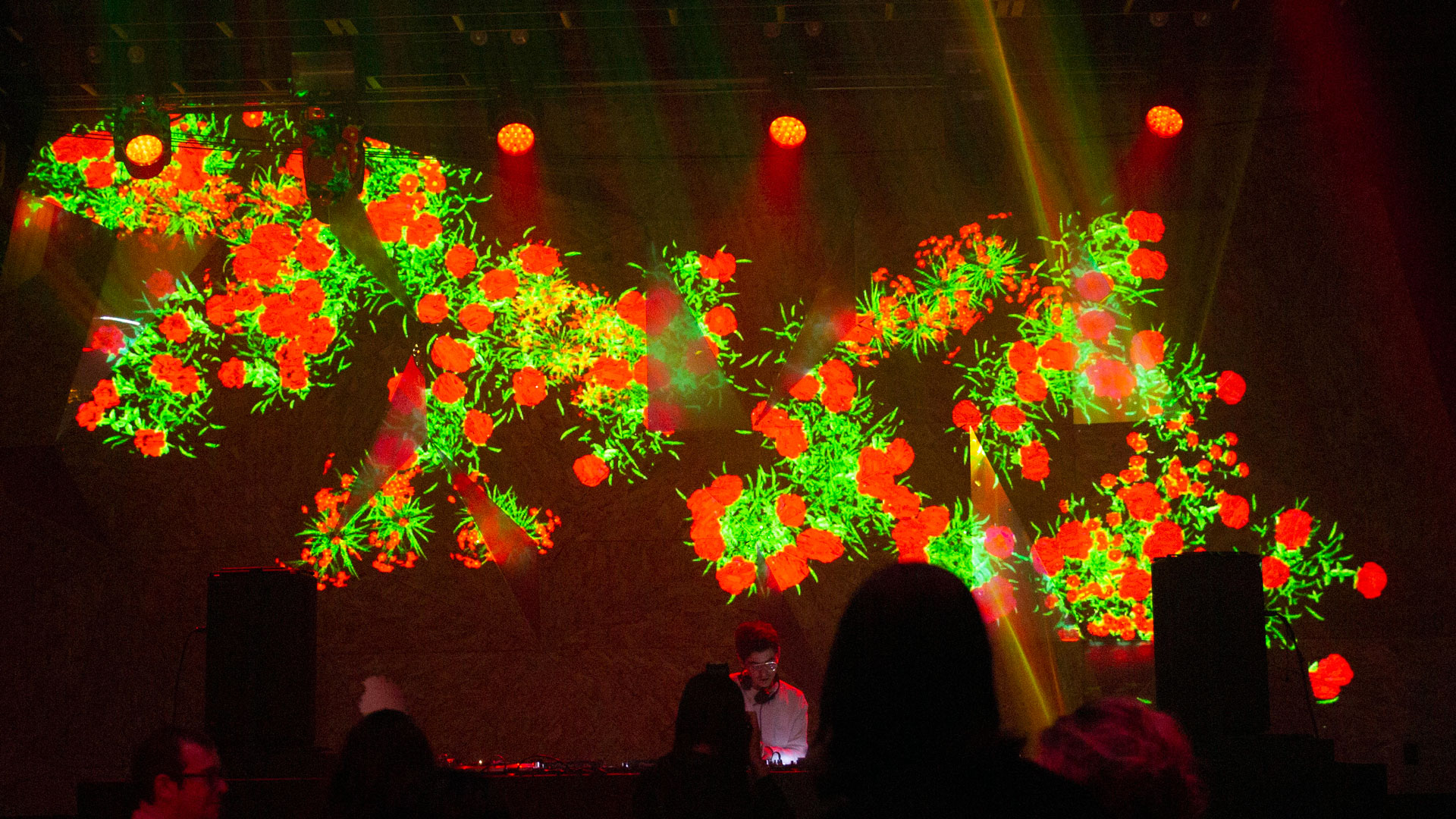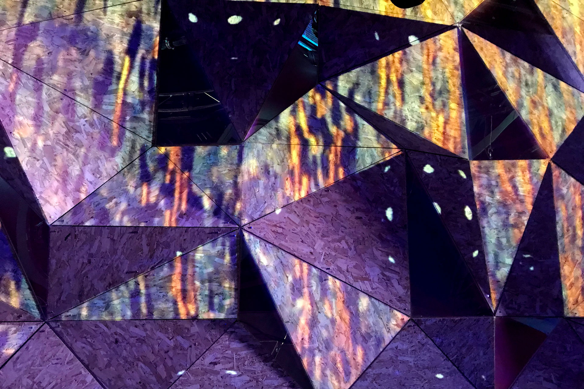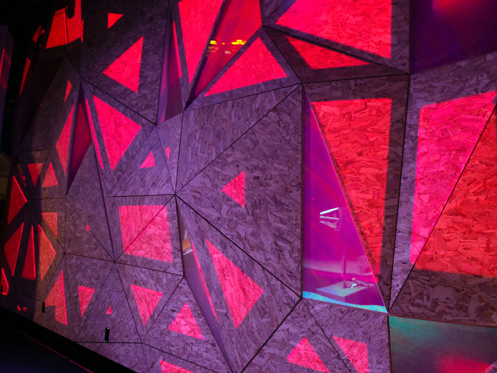 Elsewhere Brooklyn brought on Optical Animal to design and program their in-house live-visuals system to illuminate the venue's sculptural upstage wall with projection in a flexible, simple-to-manage way. OA also programmed the triangular dichroic LED sections of the surface to integrate with the projections, so that velocity and color would be continuous across both systems to create a cohesive vibe. In addition, Optical Animal continues to develop custom projection content to update the system periodically with fresh looks.