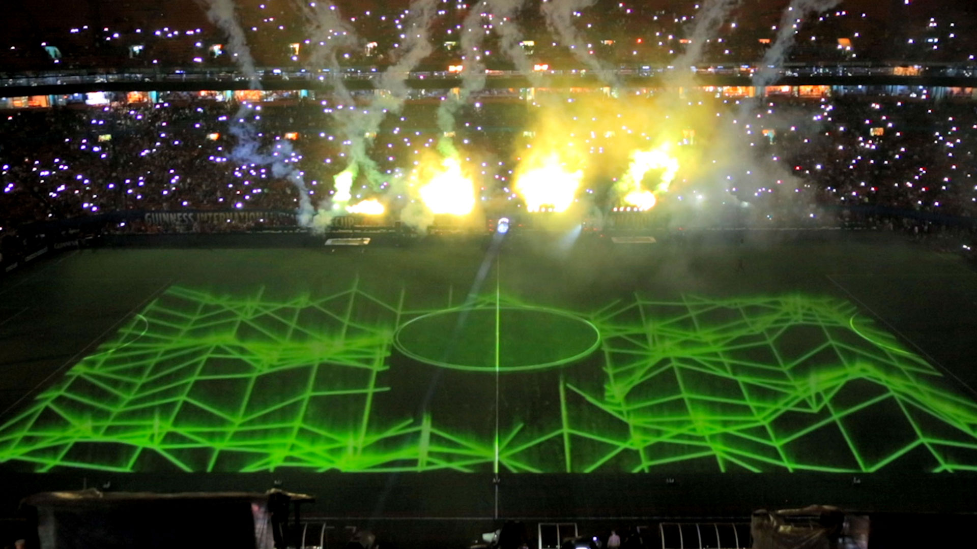 Optical Animal transformed the field of the Sun Life Stadium in Miami with a 250,000 lumen projection-mapping display for a hyped-up halftime show during the International Champion’s Cup football league final.