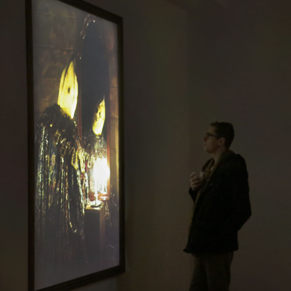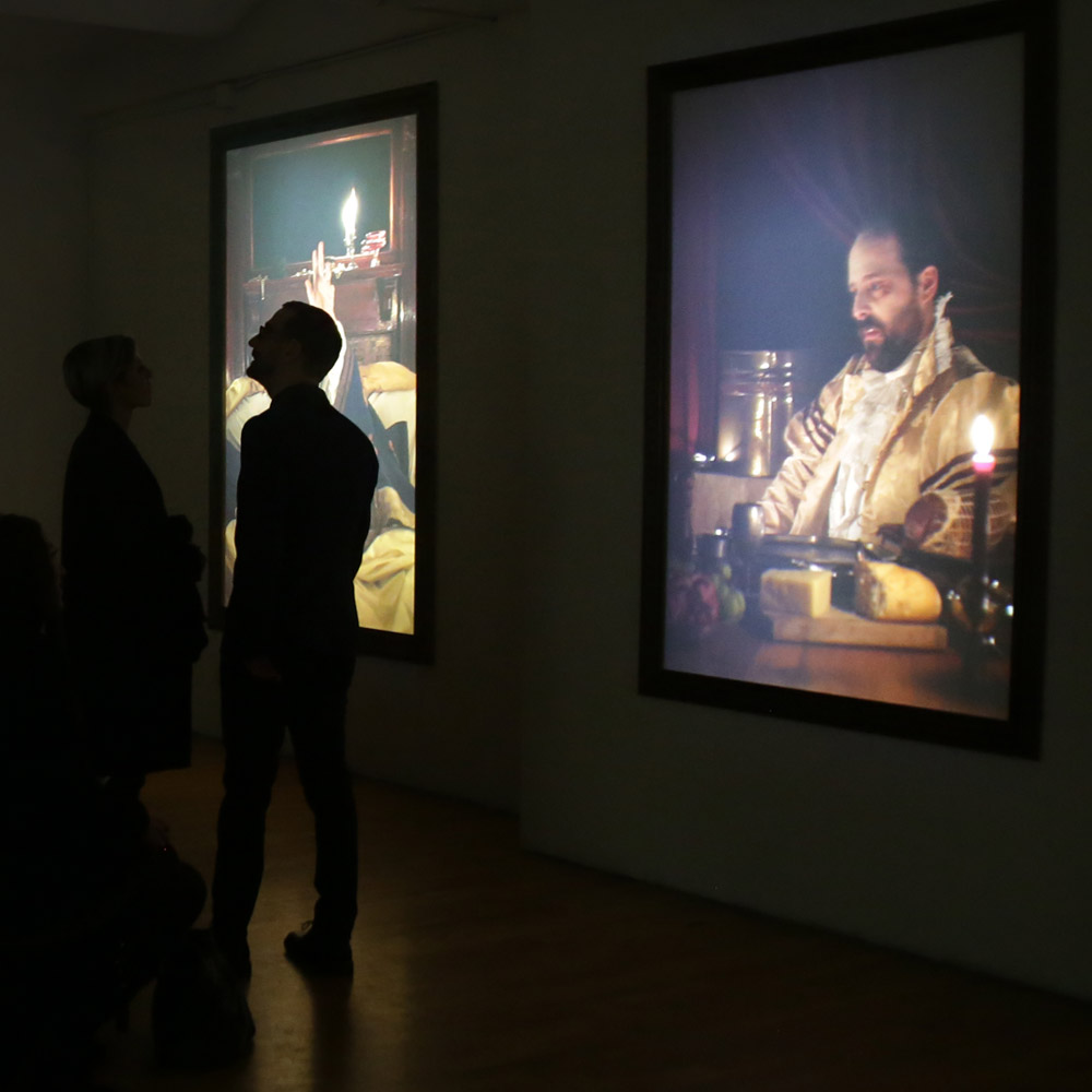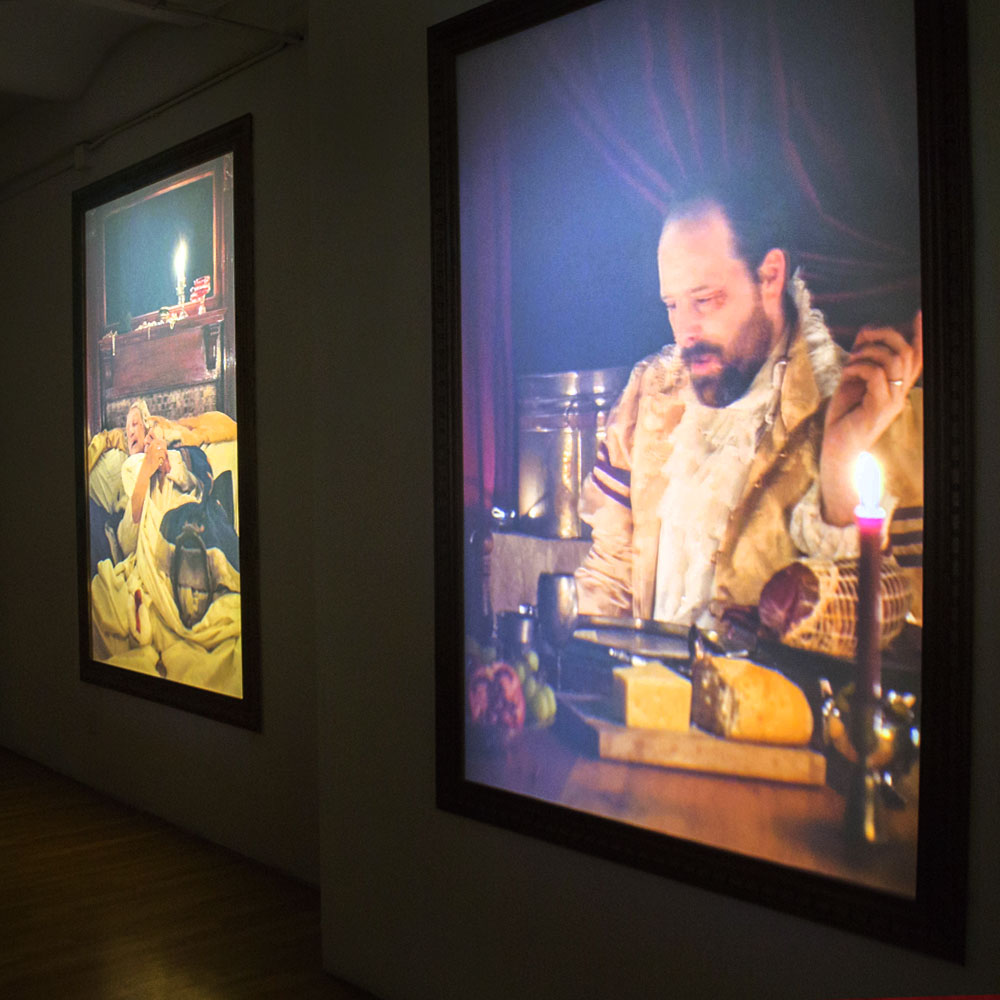 Westbeth Gallery in NYC’s West Village were transformed into a gloomy and forlorn Feudal era portrait gallery, as part of Optical Animal’s contribution to the 4-week-long group video art exhibition MediaLounge.
