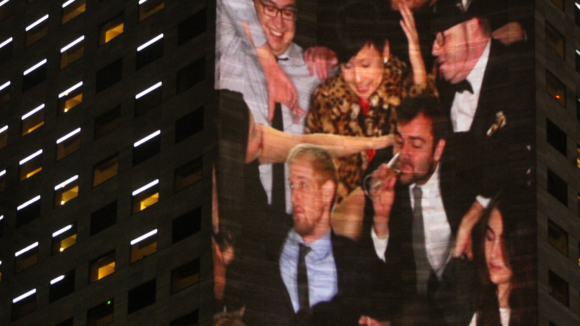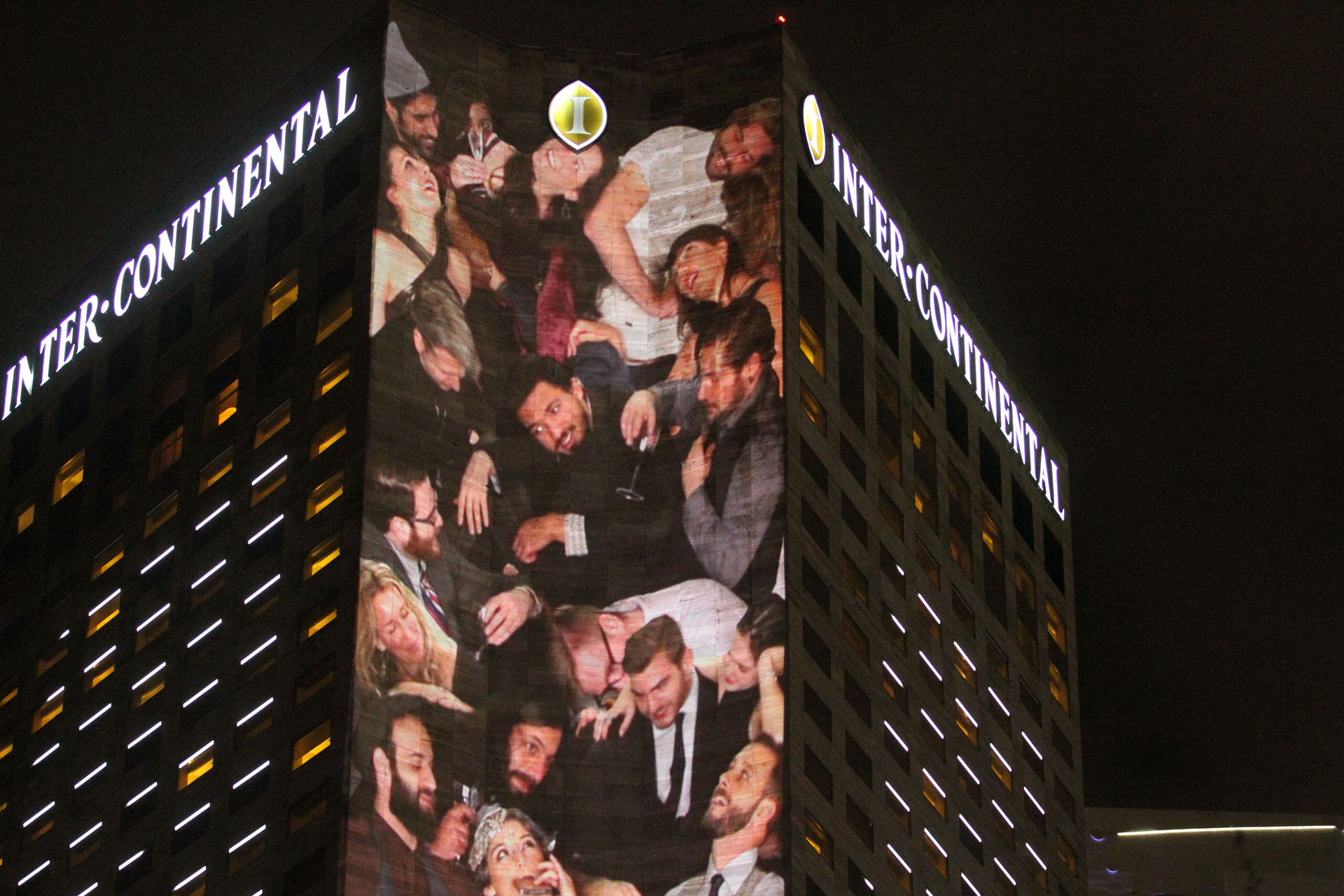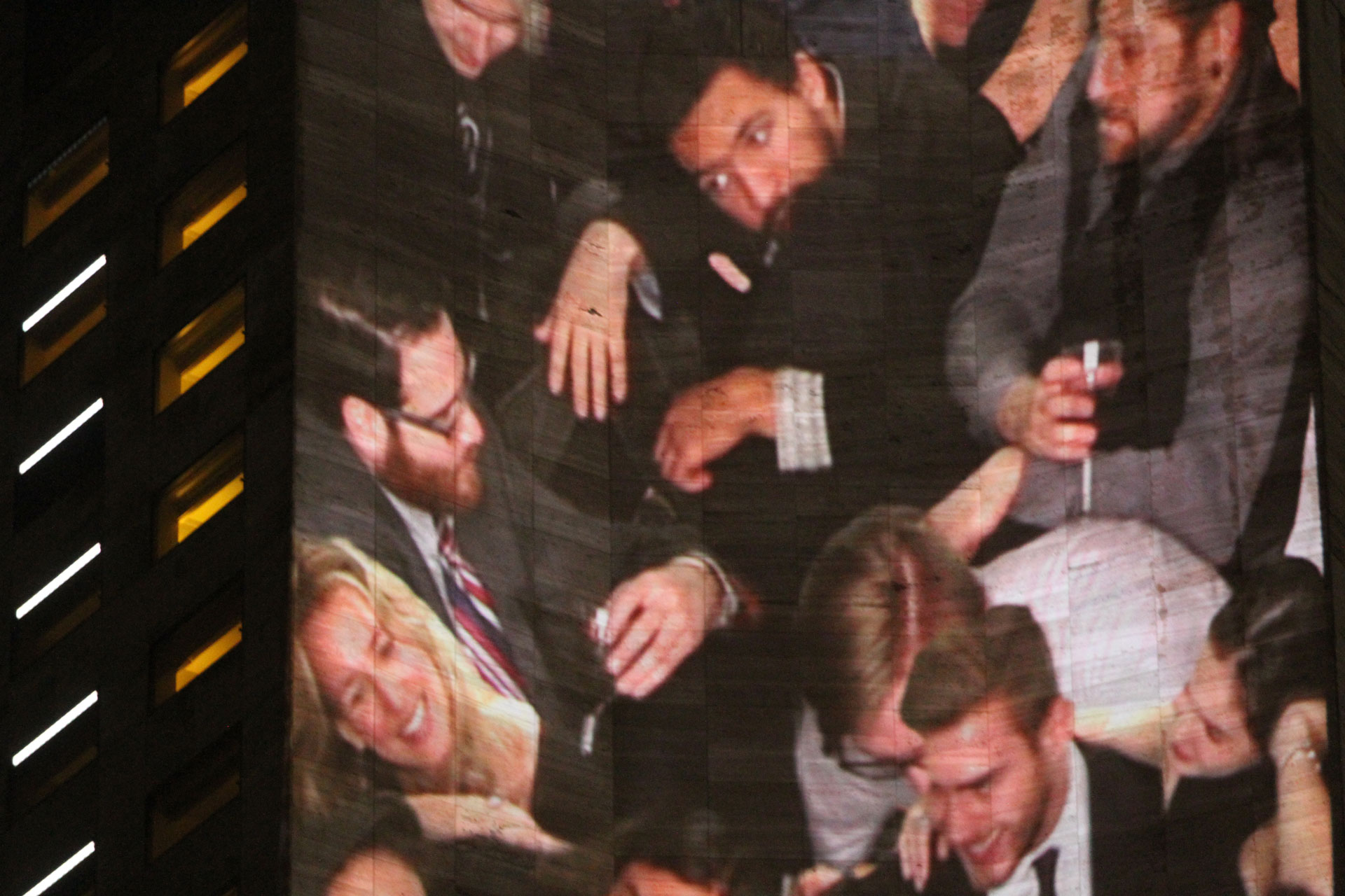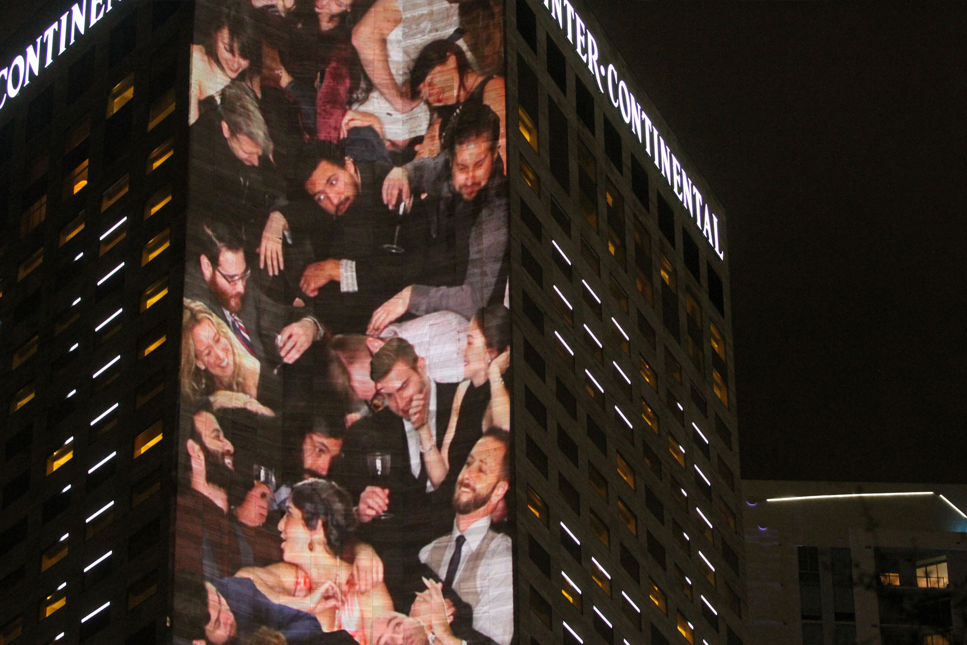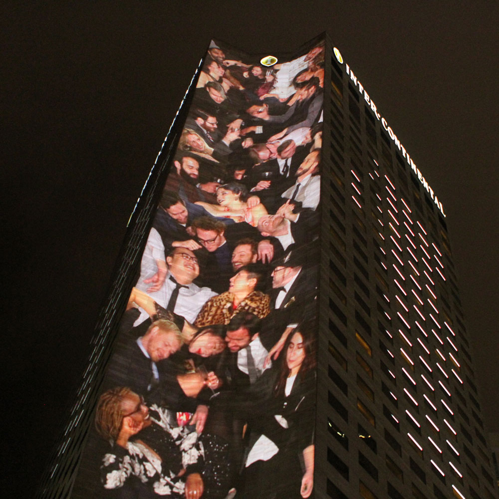 A site-specific projection art installation, People Pile was presented at Form and Substance: Miami 2015 during Art Basel week. The piece was commissioned by Integrated Visions to be be included in their video art exhibition that illuminated the side of the 34-story Intercontinental Hotel. To create the piece, we constructed a set at our studio in Brooklyn which conformed to the measurements of the Hotel, and invited friends to come kick it at the most crowded VIP party in all of Art Basel.