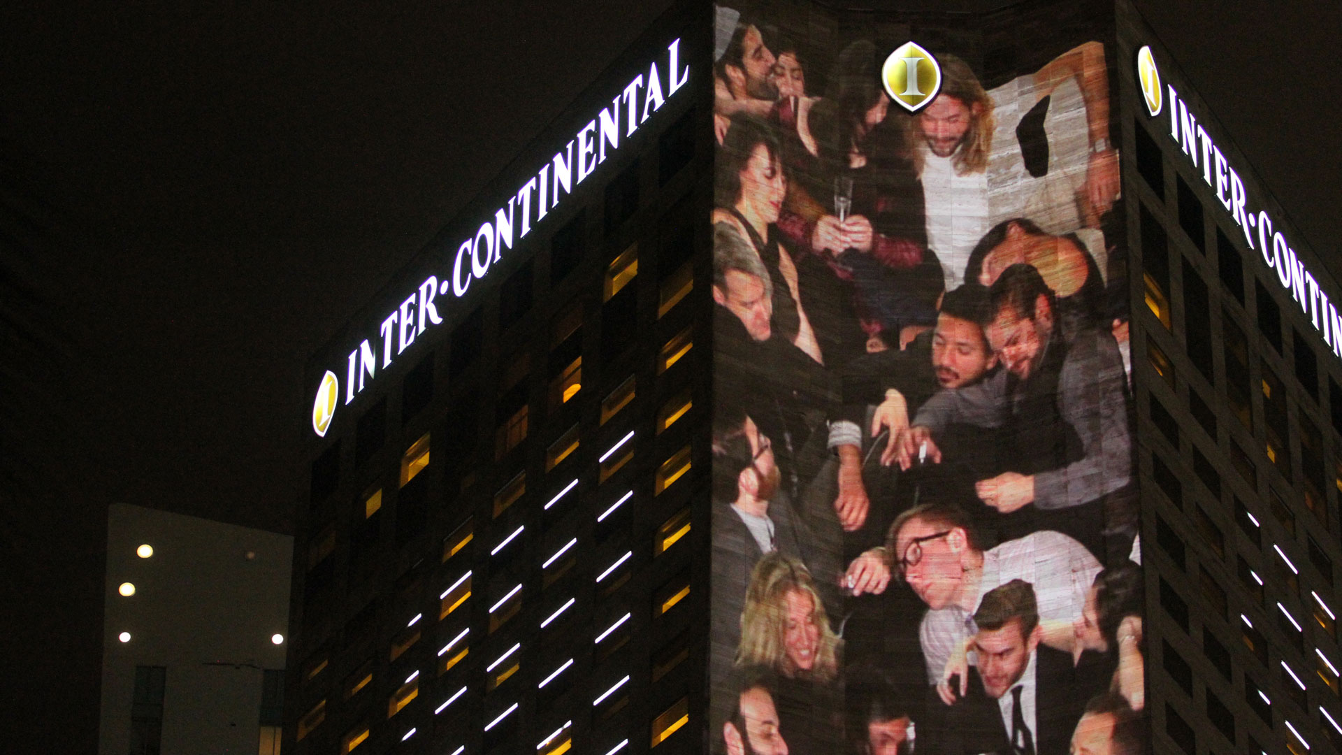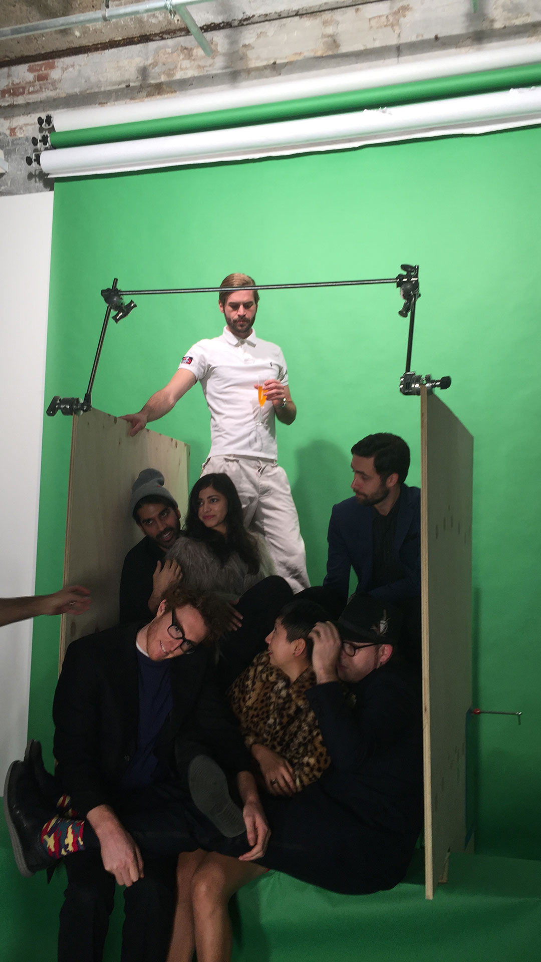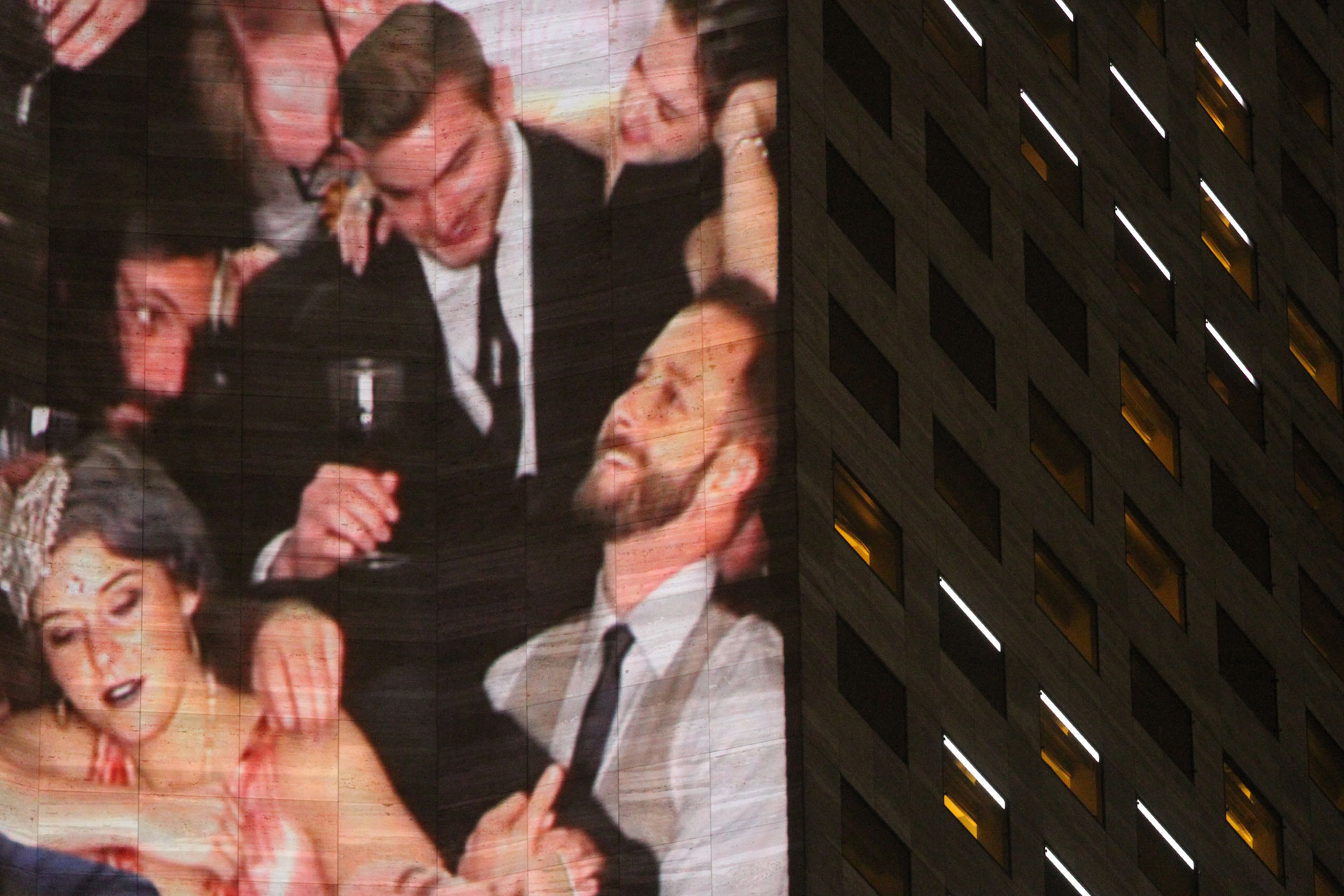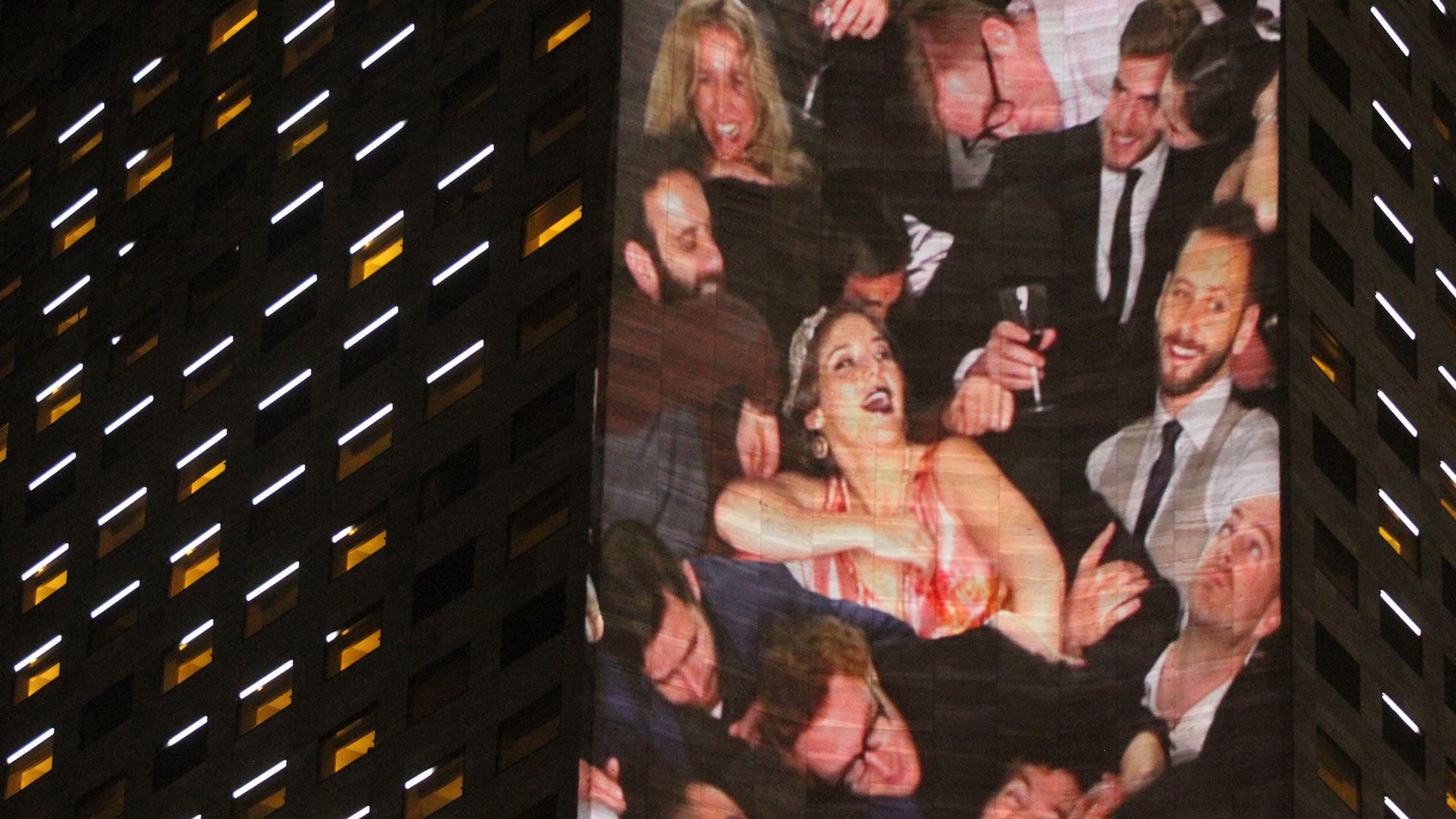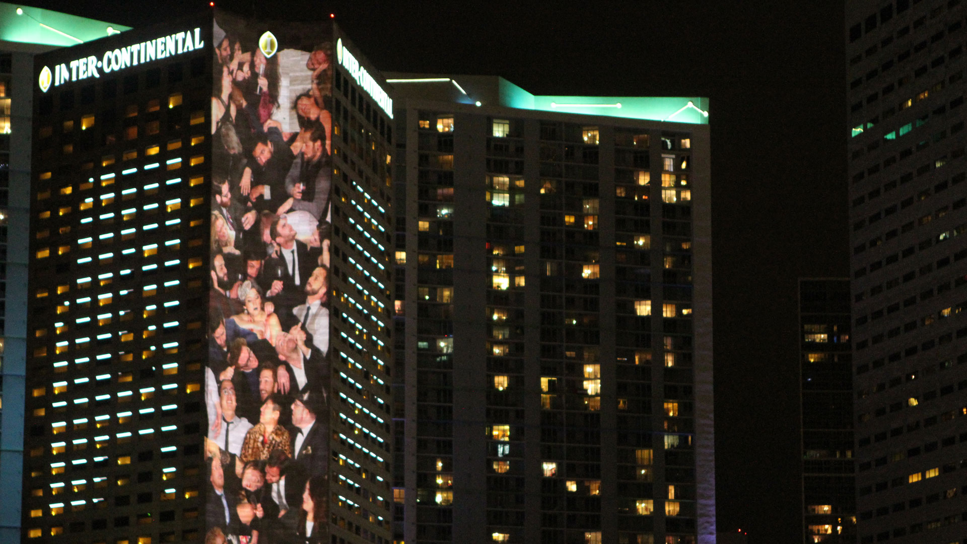 A site-specific projection art installation, People Pile was presented at Form and Substance: Miami 2015 during Art Basel week. The piece was commissioned by Integrated Visions to be be included in their video art exhibition that illuminated the side of the 34-story Intercontinental Hotel. To create the piece, we constructed a set at our studio in Brooklyn which conformed to the measurements of the Hotel, and invited friends to come kick it at the most crowded VIP party in all of Art Basel.