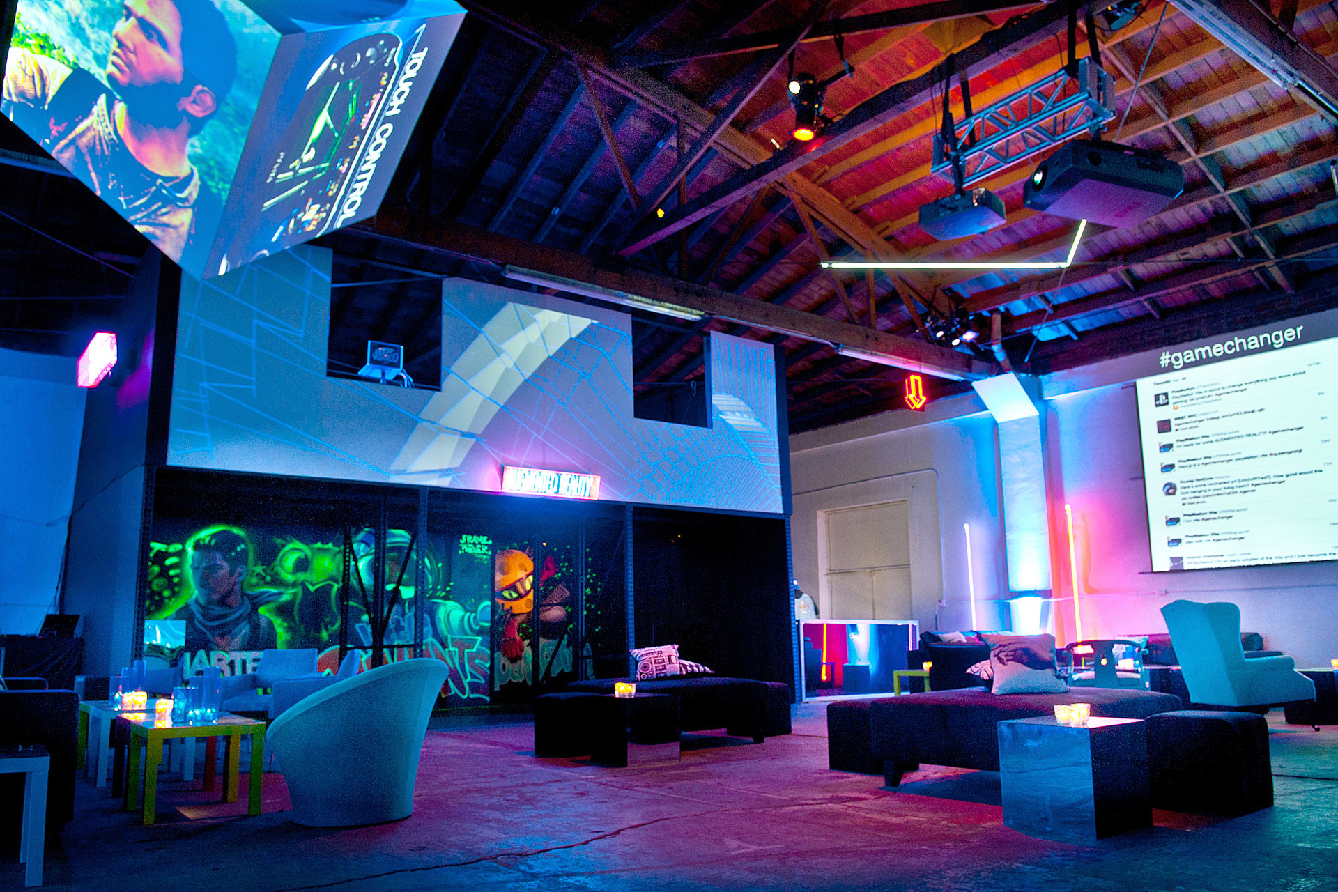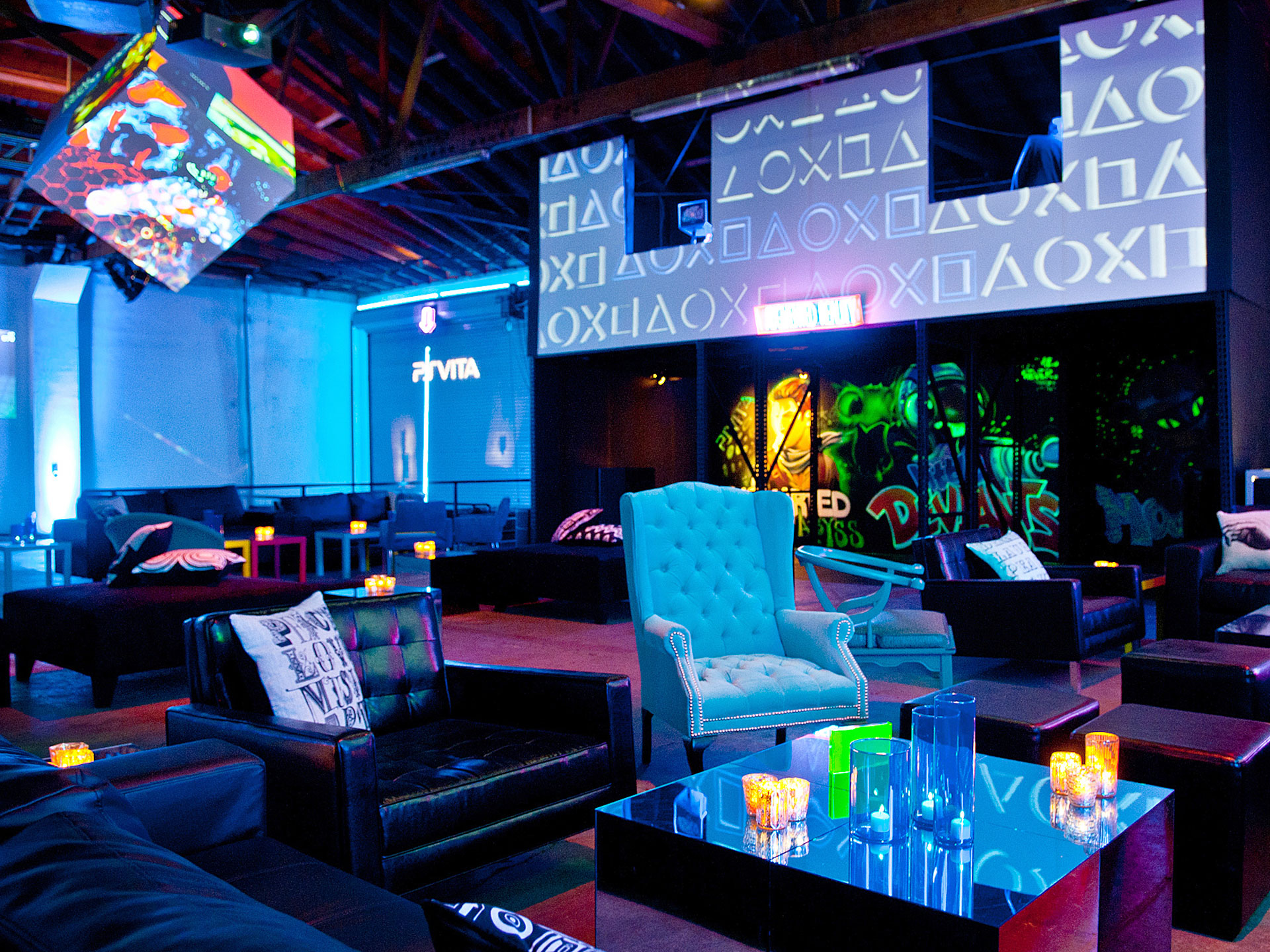 Optical Animal designed and installed multiple projection mapping experiences at the launch party for Playstation's new offering, the PS Vita. Each area of the event featured a different projection installation to highlight the various features of the device.