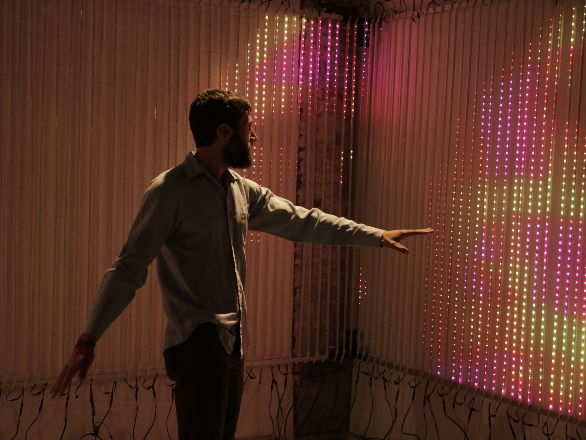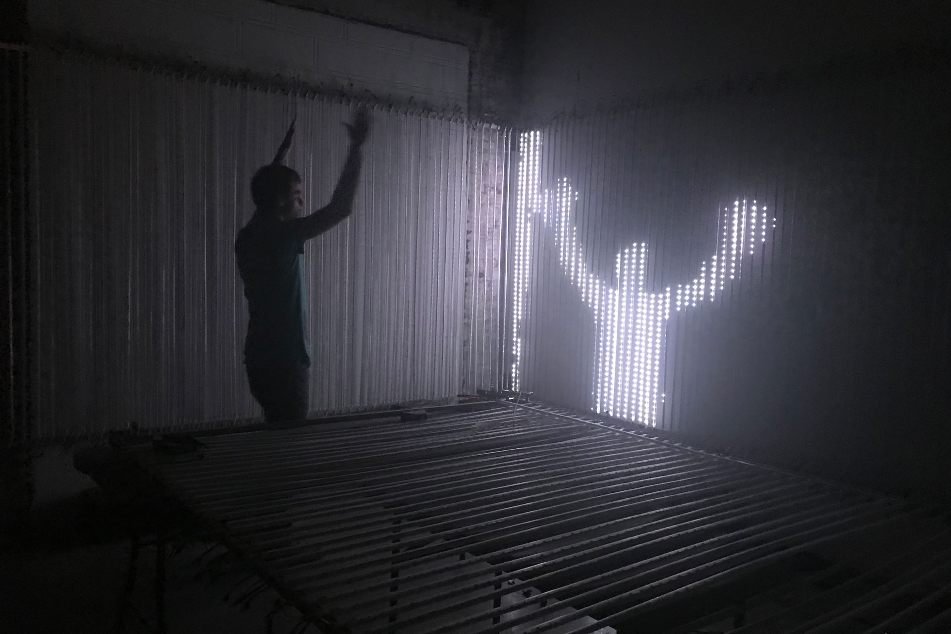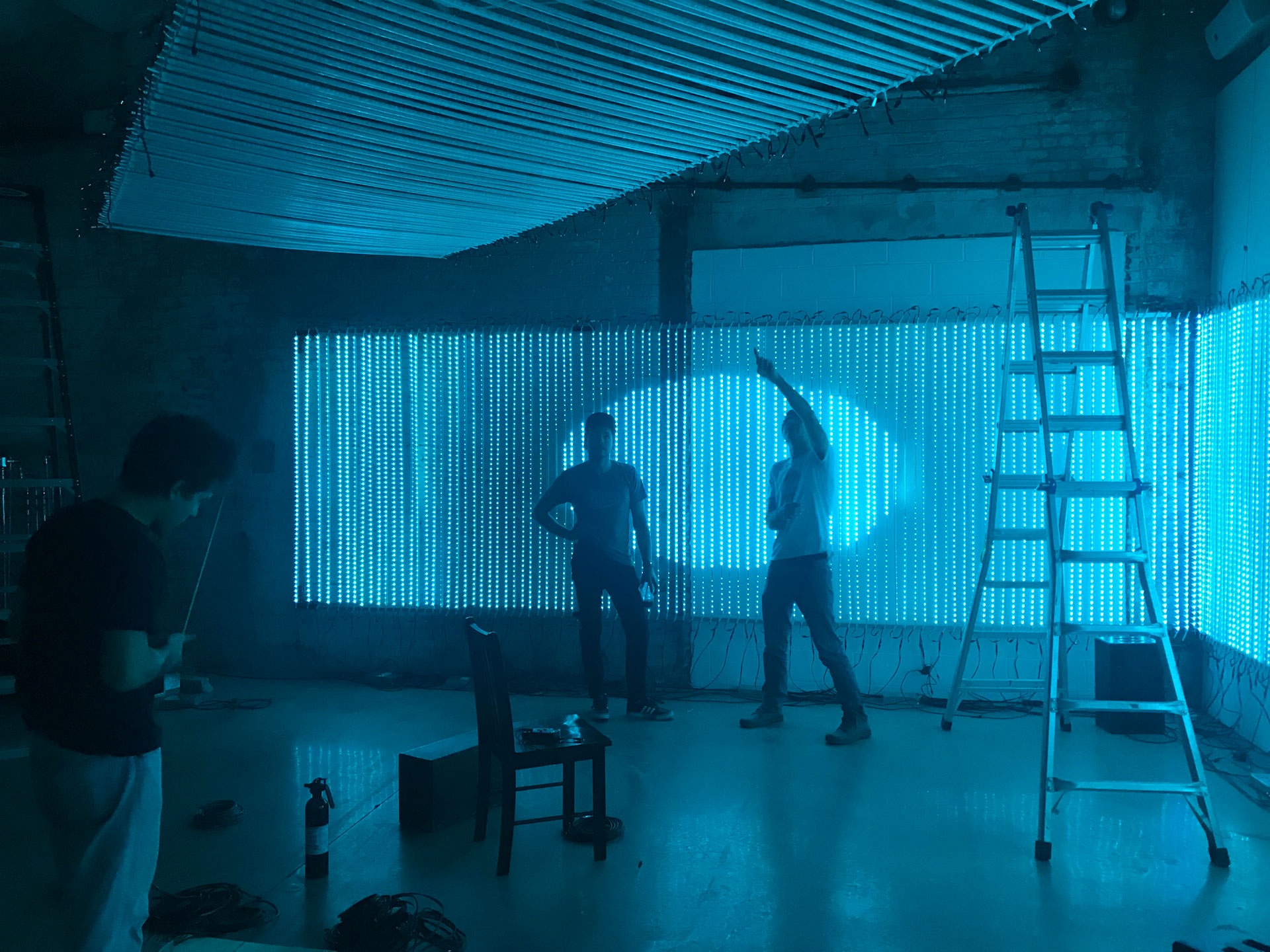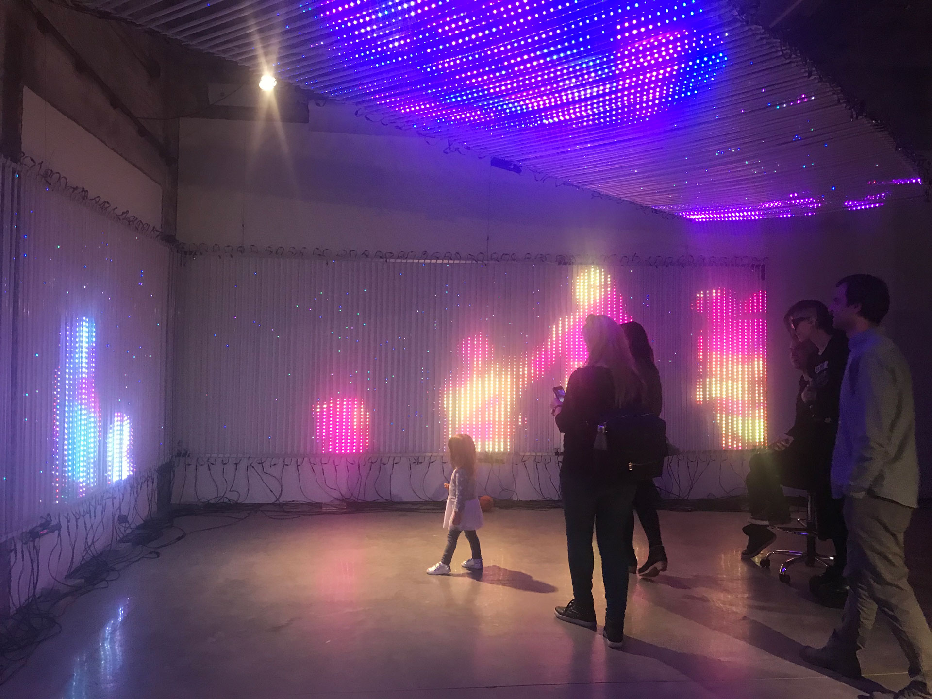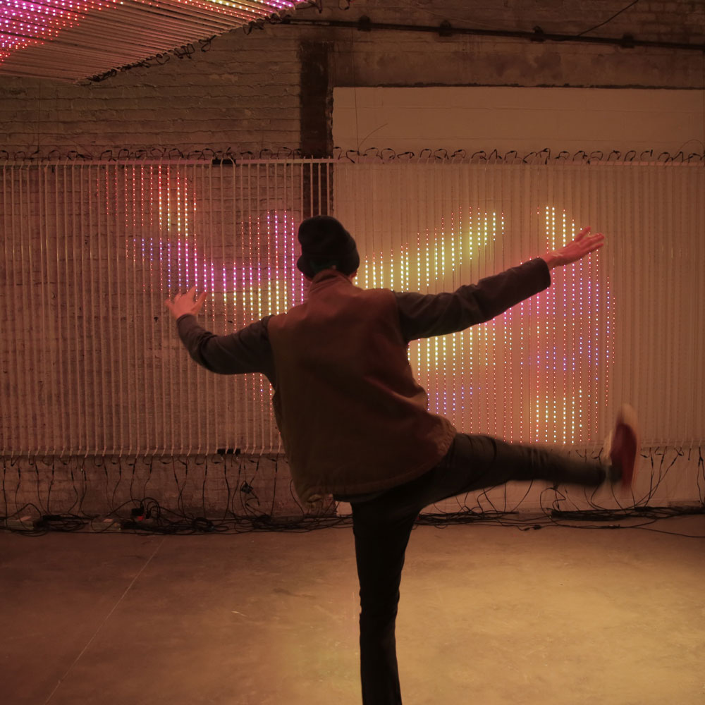 Optical Animal designed, developed, and built an interactive, kinetic light installation using 400 modular LED fixtures, multiple synchronized motion sensors, and over 22,000 individual LEDs. The visual output is generated in real time and influenced by the sensor array, with each of the 3 display panels reacting to the changing positions of the audience.
